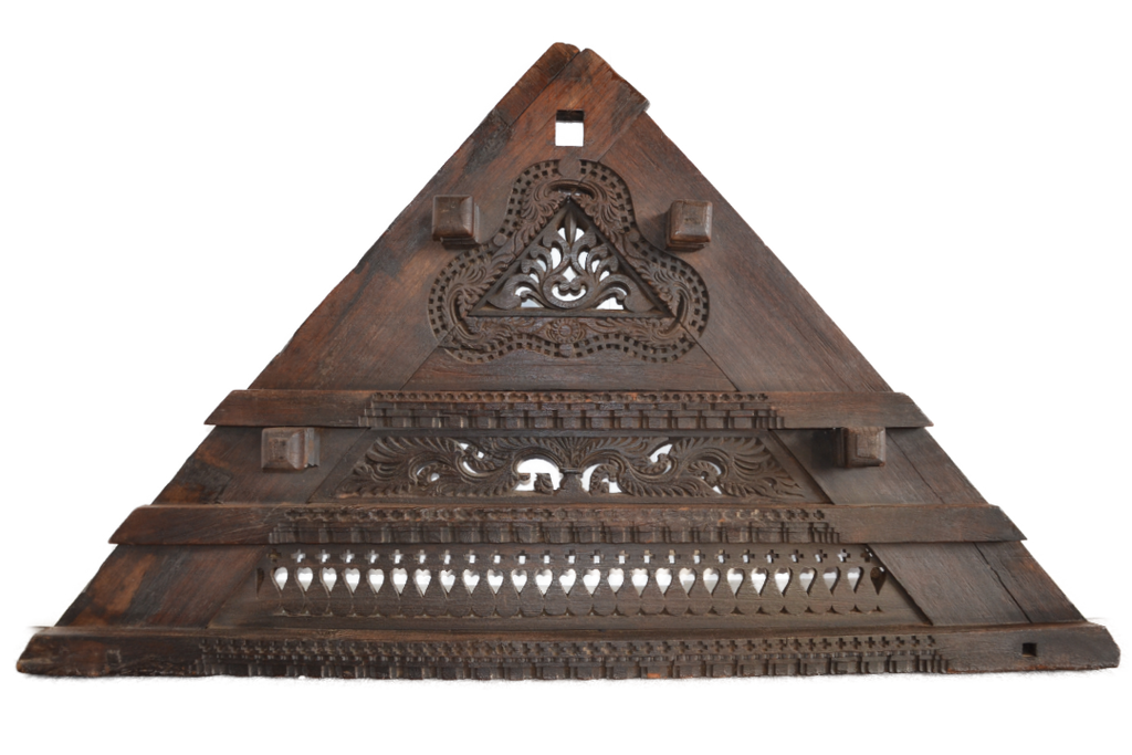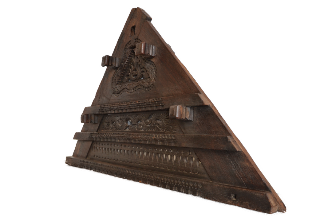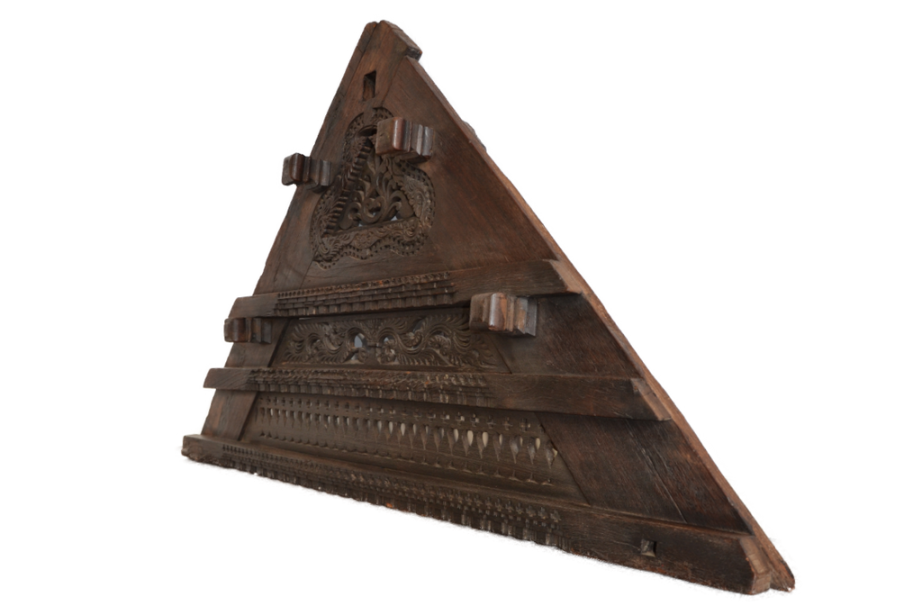 Elément d'architecture sculpté en teck du Gujarat avec patine d'origine (années 1920), en tête de lit par exemple